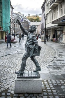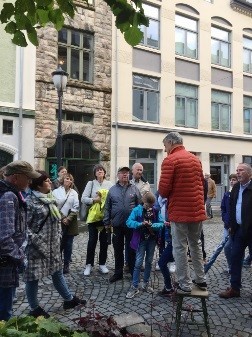 Vi fikk sett på byens smaleste hus og fikk hilse på avisgutten i
