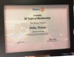 Rotaryklubb v/president Ståle Vegsund fikk også tildelt diplom i anledning 50-års-jubileet som var 15.juli