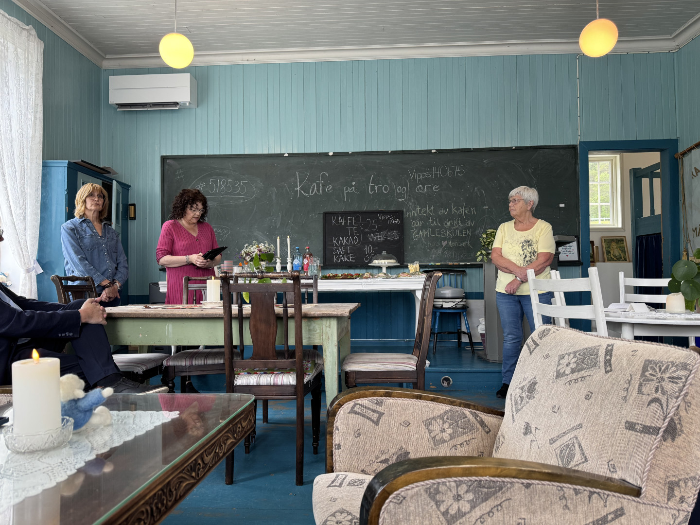 Anne Britt Ertresvåg, Marianne Sæbjørnsen og Laila Moen Martinsen tok godt i mot oss da vi besøkte den 100 år gamle skulen på Eikrem sist mandag. Disse tre i tillegg til Aud Dybdal Rogne jobber med kunst i Gamleskulen Kunst & Handverkutsal.